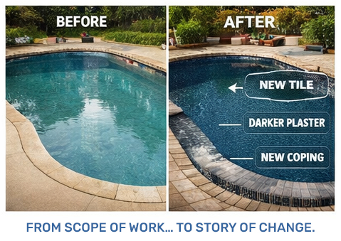 Homeowners don’t wake up wanting to buy “new plaster and coping.” They want a backyard that feels new again.They want to picture weekends, family parties, and resale value.