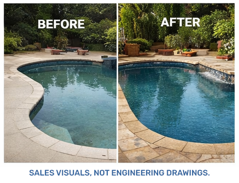 This is exactly why tools like PoolPix exist, to let contractors turn photos of a real pool into realistic remodel visuals, fast, without CAD or design software. And people don’t choose futures based on spreadsheets. They choose futures based on how they feel when they see them.